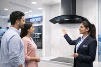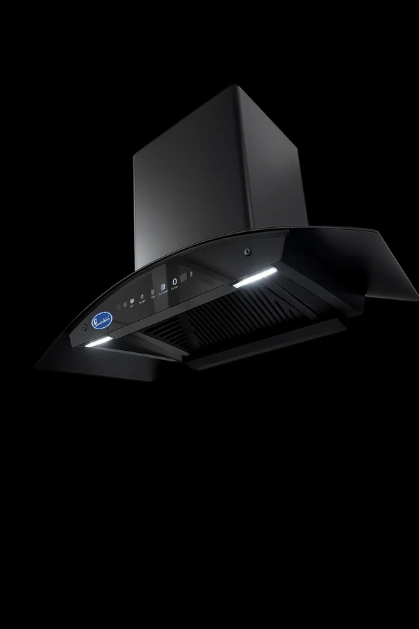 Bring home advanced performance and modern elegance with the Eurokin Apex Blk 90 kitchen chimney. Designed with a stylish matte black finish and curved glass canopy, it enhances the look of any modular kitchen.
